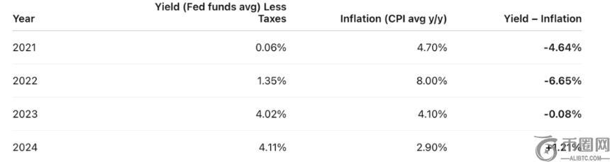 你以为现在拿到的 4.2% 收益,真的能弥补购买力损失吗?实际上,这只是「名义收益率」。因为美元的购买力每年都在缩水——这就是所谓的通胀。即使在经济状况较好的年份,通胀也是意料之中的事;而一旦经济形势恶化,通胀只会更加严重。