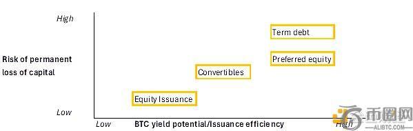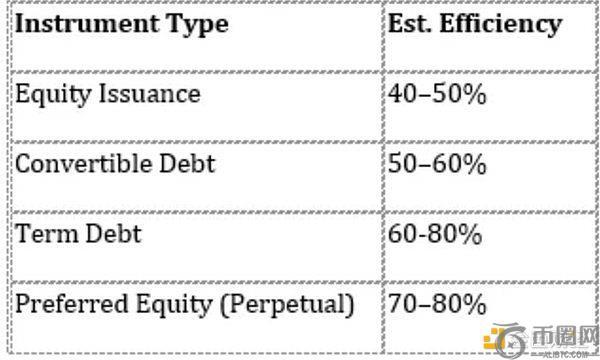 比特币财库储备公司使用的主要金融工具包括普通股、可转换债券、定期债务和永久性优先股。这些工具构成了风险效率阶梯的基础。