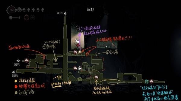 《空洞骑士丝之歌》第一章中包含多个地图,每个地图中都有着一些任务、道具与技能点可以获得,下面请看由“绝不早到十元元”为大家带来的《空洞骑士丝之歌》第一章重要点位一图流,希望可以帮助到大家。