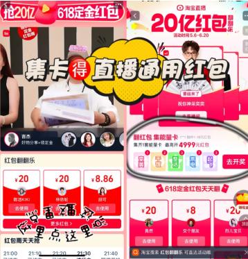 1,逛几个直播间晃一晃,轻松领到定金红包➕攒到能量卡