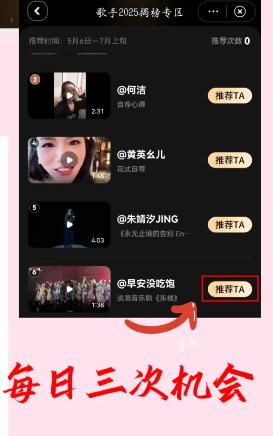 3,每日有三次投票的机会,希望大家都能选上自己喜欢的歌手