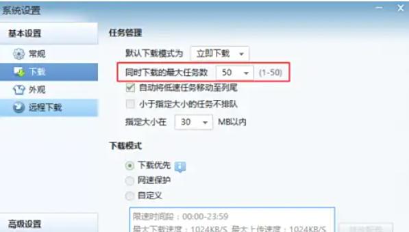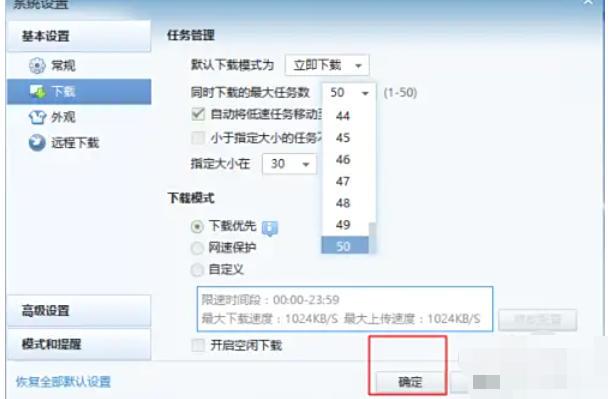 在右侧设置区域找到 「同时下载的最大任务数」(或类似表述)。