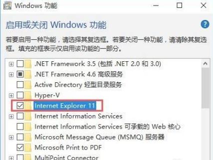 4、接着在那个小窗口中找到Inetrnet Explorer 11这一项,把前面的勾勾给取消了,如下图所示。