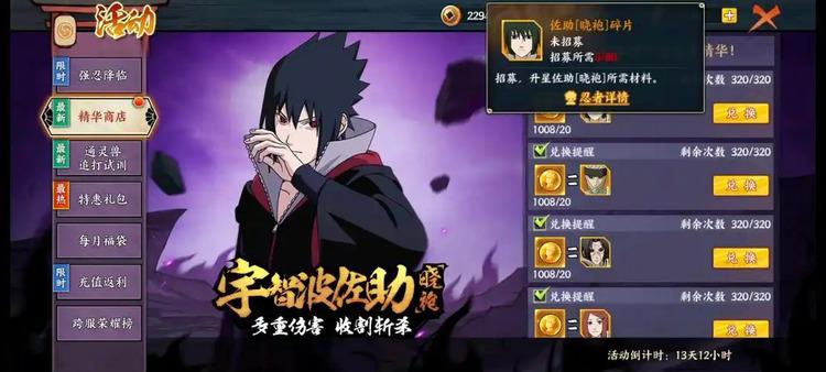 火影忍者手游如何买鹰佐?游戏中的角色鹰佐是根据动漫角色佐助在鹰小队时期的造型设计而成,拥有与动漫中相同的技能。获得鹰佐的最简单方式是通过当前版本的氪金抽卡,在高级招募页面中有机会得到碎片或完整角色。如果开启了游戏内特效,抽取价格还会有所优惠,另外,每日商店也会刷新碎片,需用金币购买。如果不想氪金,还有其他免费获取的途径。游戏会定期举办各种活动,玩家可以有机会选择忍者碎片;每日签到也是一种获取方式,但概率较低;也可以选择暂时不抽卡,积攒金币,等到下次忍者复刻时一次性获取。