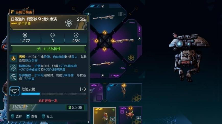 输出型护盾,杀敌产生追踪弹,伤害等于同等级火箭筒,适合打小怪堆