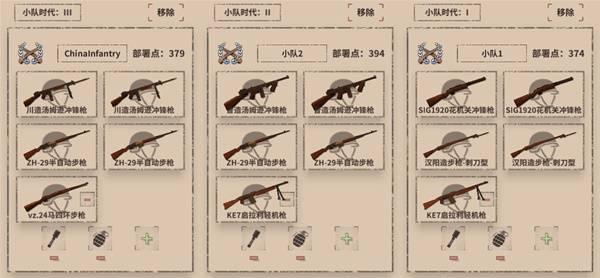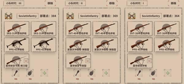 当前游戏里有的两个阵营外加不同时代的小队配置。