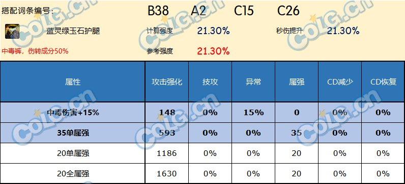 纯的属强蓝灵裤几乎没有任何竞争力,仙界版本裤子部位多了通用的中毒15%缓解了一下蓝灵裤在异常流的定位,作为一个中毒流的优选方案而存在。当然,由于中毒攻强不高,数值也低一些,所以35属强只能算是一种强度补偿,指望它撑起一条裤子的价值还是勉强了。