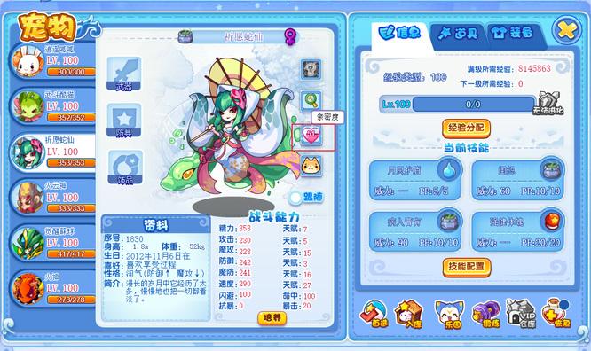 2.玩家打开宠物界面后,再点击相对应的宠物,然后点击如图图标就可以查看亲密度关系了。