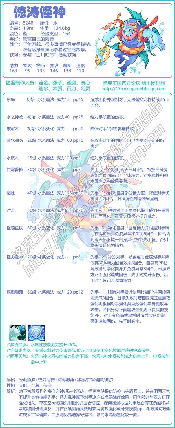 洛克王国里面有很多的宠物小精灵,今天给大家带来的是惊涛怪神技能表,还有很多的小伙伴不清楚技能是什么,那么下面就为大家带来了相关的技能表的分享.