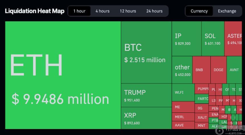12小时内,ETH清算金额为4.83亿美元,BTC清算金额为2.76亿美元。