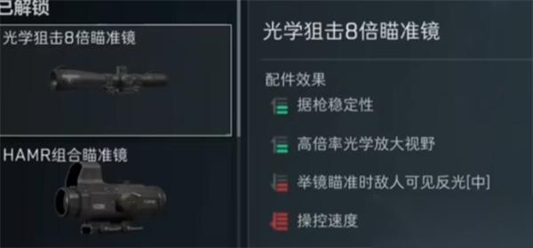 瞄具:光学狙击8倍镜 —— 适合中远距离作战,视野清晰。