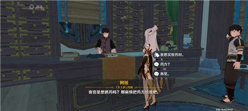 和药师阿桂对话【我想买些药材】。