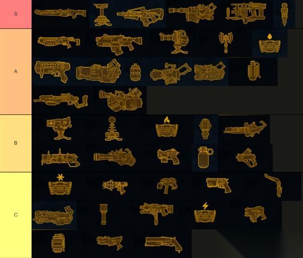 然后对S级和A级武器每一把单独说一下,B级和C级不赘述了。