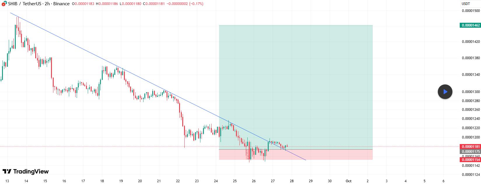 柴犬已突破较低时间范围内的下降趋势线,引发了对近期上涨至 9 月份高点的预测。