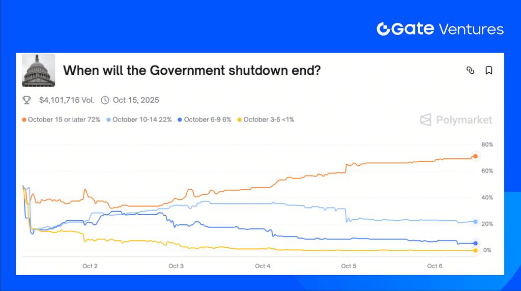 On October 1, the two parties failed to reach a compromise, and the US federal government temporarily shut down in line with market expectations. The focal point of the appropriations battle is cuts to healthcare subsidies, especially the Enhanced Premium Tax Credits (ePTC), which were originally set to expire at the end of 2025. Democrats may seek to leverage the shutdown to push Republicans to extend the ePTC. Republicans tend to believe the public will blame Democrats for the shutdown and see it as an opportunity to reduce the size of government. Betting markets like Polymarket currently price roughly a 30% probability that the shutdown ends within two weeks, with growing concern that it could last longer.