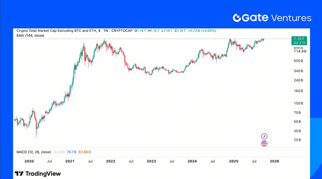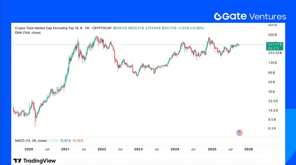 The overallcrypto marketcap increased 8.65% this week, while the market cap excluding BTC and ETH rose only 5.55%, highlighting the stronger performance of BTC and ETH driven by robust ETF inflows. Moreover, the market cap excluding the top 10 tokens climbed just 3.49%, further underscoring that this week’s rally was largely led by blue-chips assets.