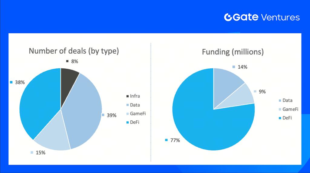The number of deals closed in the previous week was 13, with Data having 5 deals, representing 38% for each sector of the total number of deals. Meanwhile, Infra had 1 (20%), Gamefi had 2 (15%) and DeFi had 5 (38%) deals.