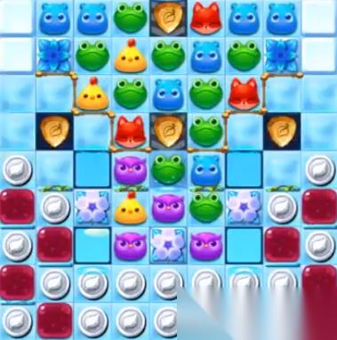 4、在关卡中后期,空间比较大,魔法石移动到上面之后,我们的消除重点还是底层的冰块,多多的制作出特效的组合。