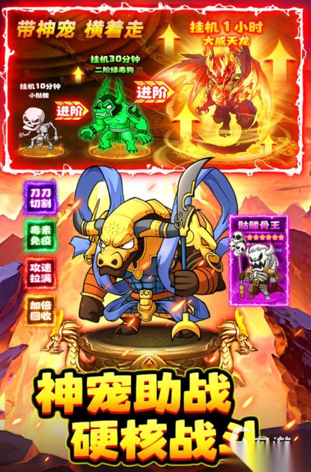 采用Q萌画风的全美术魔改的传奇手游,战法道三职业造型可爱,战斗体验却不失热血。最大的特色是宠物系统允许玩家收集养成多种战宠,而且采用轻松挂机玩法,支持自动拾取和自动回收,玩家告别爆肝的同时还能实现极品装备秒收,而且副本挑战、沙城争霸等等玩法全部复刻,结合渡劫修仙和坐骑养成系统,体验更新鲜!