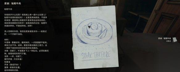 在桌子上即可拾取鞑靼牛肉菜谱。