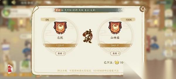 下注可以赚1000元宝,这个基本没有什么悬念,可以说是白送的。但是,谨防有绘院没布阵没职位还没打。