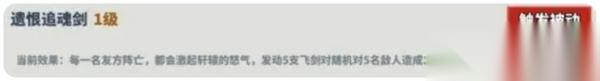 描述:每一名友方阵亡,都会激起轩辕的怒气,发动5支飞剑对随机5名敌人造成100%伤害。