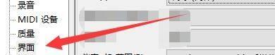 3、在打开的窗口界面中,找到右侧中的"界面"选项。