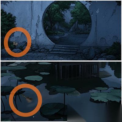 别雅园:拿走园口左面石头上的茉莉花,左面没东西,右面戏台下出现新场景没东西,往前走出现小高能一个女鬼,将娃娃给她,点击水面得到招魂铃。