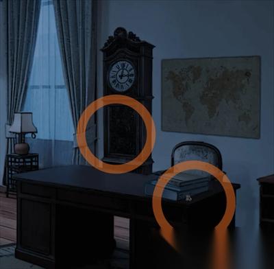 东院:杨修平房间:拿走桌子上的螺丝,将机械图纸放进靠墙坐钟里,拉动掉下来的红绳子,钟每响一次就停到一处时间,分别是七点、三点、十二点,按时辰是戌寅子(后面重开游戏时发现这个时间是随机的,所以只能自己记住三个时间对应的三个时辰)。