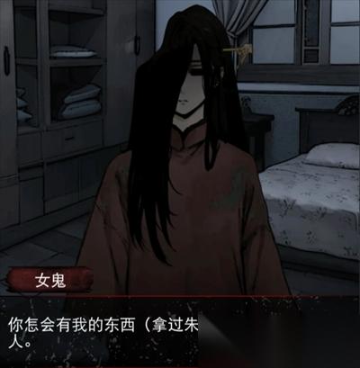 来到别雅园右边戏台下面新场景,左走用银色钥匙打开房间,开门小高能,需要猜中女鬼死亡原因(这里如果前面剧情里朱钗没有还给龙青青,直接给女鬼跳过回答问题),选被砸(因为女鬼头上有个大窟窿),获得蜡烛,拿起床上的手链(跟女鬼对话完,需要退出该场景再进入,会发现床上出现手链)