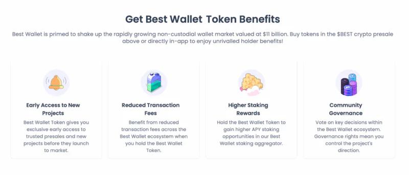 $BEST 代币预计将表现良好,因为它为 Best Wallet 用户提供了诸多好处。虽然 $BEST 代币尚未上线,但您可以在 $BEST 预售结束前立即体验 Best Wallet 应用,熟悉其运作方式。