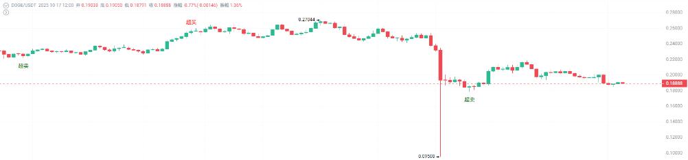 狗狗币在周五崩盘后曾从0.18美元的低点略有回升,但始终难以实现真正的涨幅。