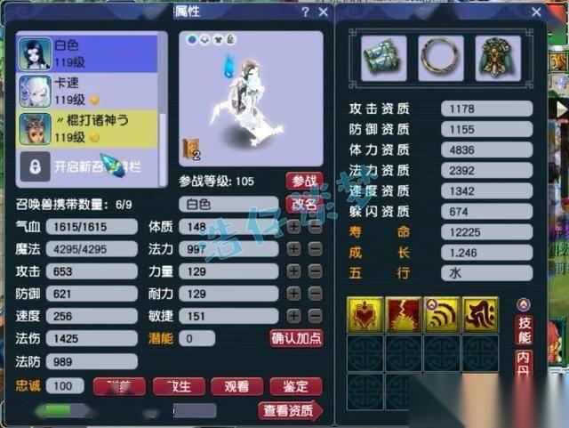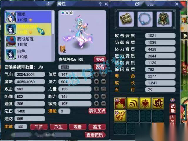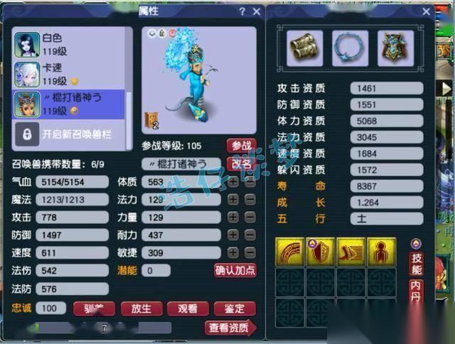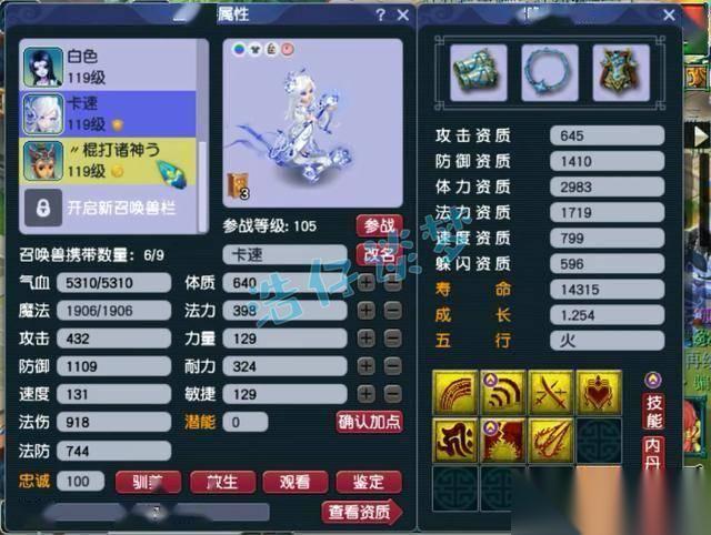 4技能配速血宠净瓶女娲,速度资质很不错,套装带的是高神。