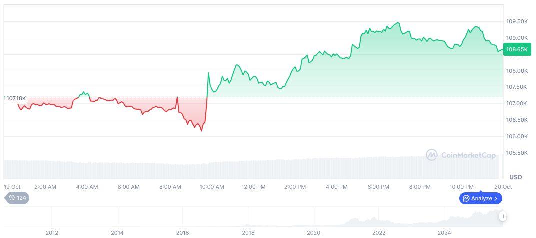 根据 CoinMarketCap 的数据,比特币 (BTC) 目前交易价格为 108,752.97 美元,市值为 2.17 万亿美元。24小时交易量激增54.69%,表明市场对不断变化的新闻的反应。在过去的90天里,比特币价格下跌了7.09%。