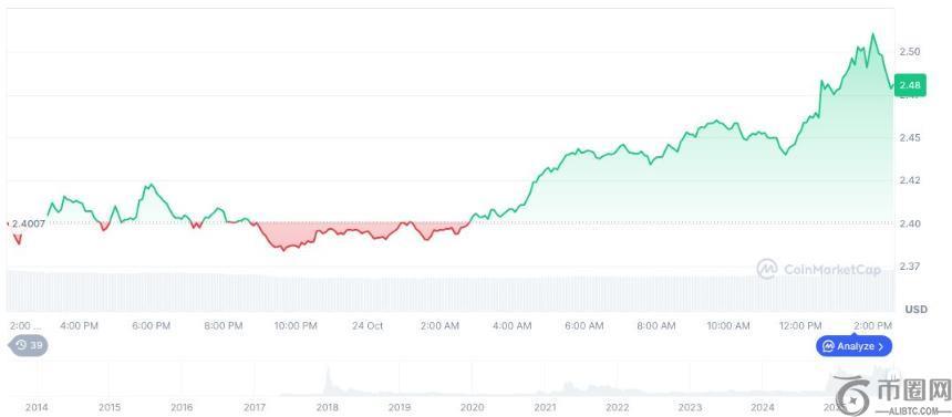 Ripple 的原生代币 XRP 的交易价格为 2.48 美元,市值为1487.5亿美元。它持有4%的市场主导地位,尽管最近下降14.40%过去 30 天内。CoinMarketCap 的数据显示增长3.46%在过去 24 小时内,反映了这些发展下的交易活动。