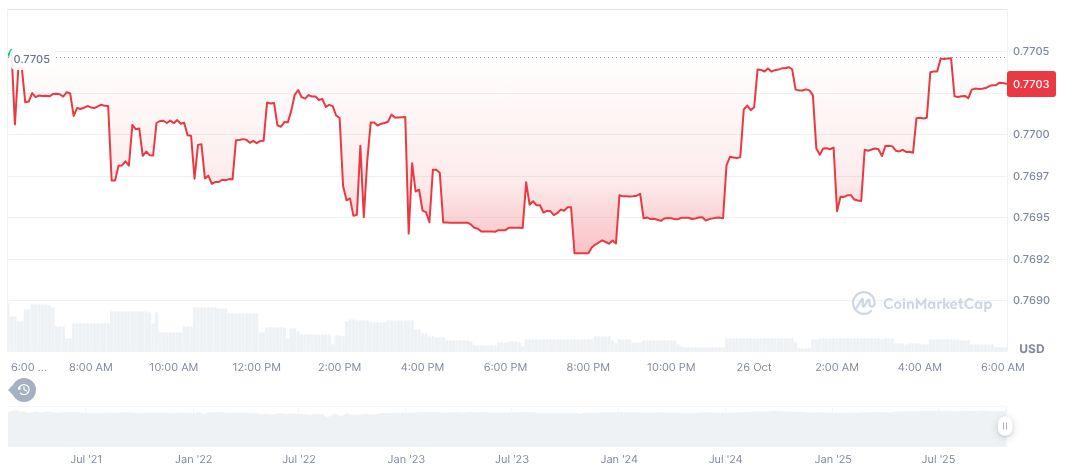 XSGD 的价值为 0.77 美元,市值为 16,918,124 美元,在近期融资活动后正受到密切关注。其流通供应量为 21,962,760,价格在不同时期显著下跌:24 小时 (-2.16%) 和 90 天 (-1.33%)。根据 CoinMarketCap 的数据,交易量在 24 小时内大幅下降了 89.73%。
