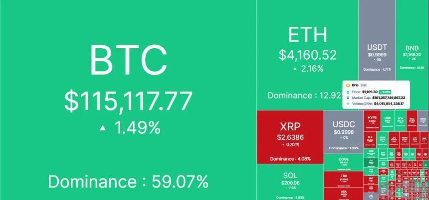 周一,随着交易员对美联储本周降息的信心增强,比特币价格突破115,000美元大关。这一领先的加密货币在24小时内上涨超过4%,达到115,200美元,而以太坊则上涨至4,160美元。