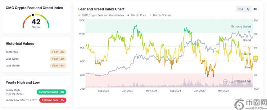周末市场情绪明显转好。加密货币恐惧与贪婪指数自10月中旬以来首次突破“恐惧”区间。该指数目前位于51点,并呈现中性展望。