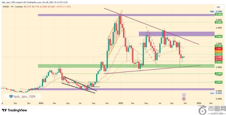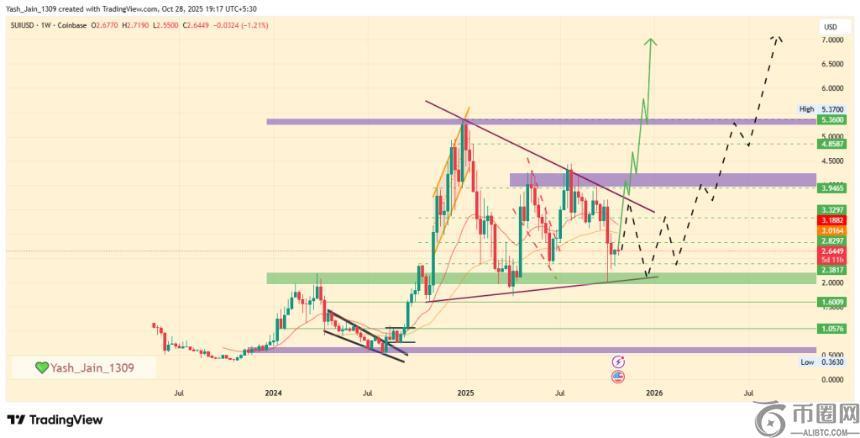 这2025年SUI价格预测该框架指向未来几个月的决定性时刻。如果出现积极的买盘,突破对称三角形可能会推动价格在年底前回升至5.32美元,并可能在SUI价格图上形成强劲的无影蜡烛图。