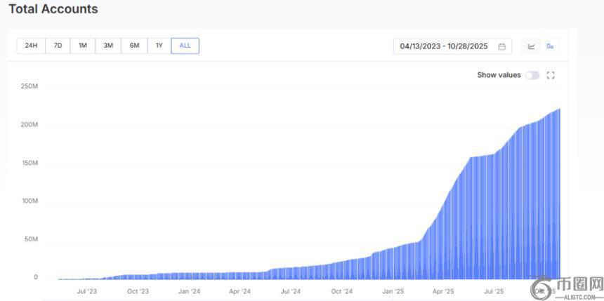 SUI链上数据显示生态系统增长创纪录,总账户数飙升至2.25亿以上。