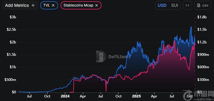 此外,SUI的总锁定价值(TVL)稳定在18.9亿美元左右,10月初曾触及26.2亿美元的历史高位。