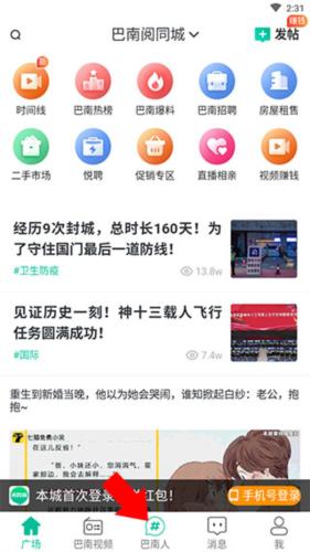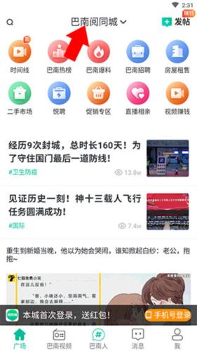 3、选择后点击下方巴南人即可浏览同城信息。