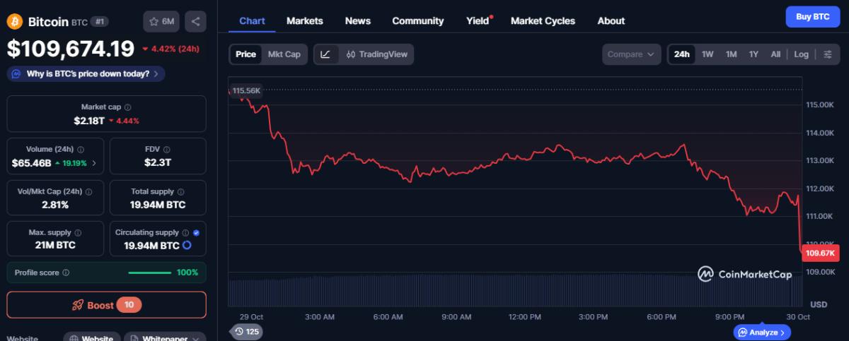 截至发稿时,比特币交易价格约为 109,674 美元,24 小时内下跌 4.4%,市值达 2.18 万亿美元,在美联储会议结束后出现大幅下跌。随着市场尘埃落定,有一点似乎很明确:在美联储决议公布前做空的交易员对市场判断正确。