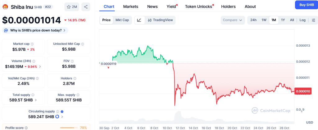 Shiba Inu 价格稳定在 0.00001014 美元附近,并显示出积累迹象。阻力位分别位于 0.00001120 美元、0.00001250 美元和 0.00001400 美元,支撑位分别位于 0.00000950 美元、0.00000880 美元和 0.00000800 美元。