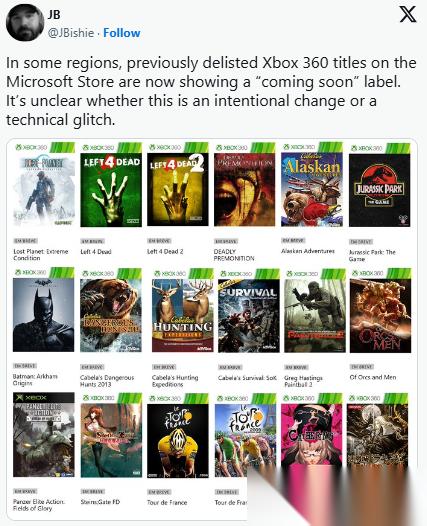 在某些地区的微软商店中,多款早已下架的Xbox 360游戏被标注为“即将推出”。这一异常现象引发玩家诸多猜测,但目前官方尚未作出解释。