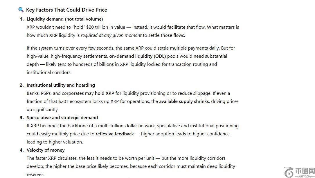 ChatGPT指出,XRP的价值并非取决于20万亿美元的总交易量,而是取决于……数量需要流动资金才能顺利转移这笔资金。