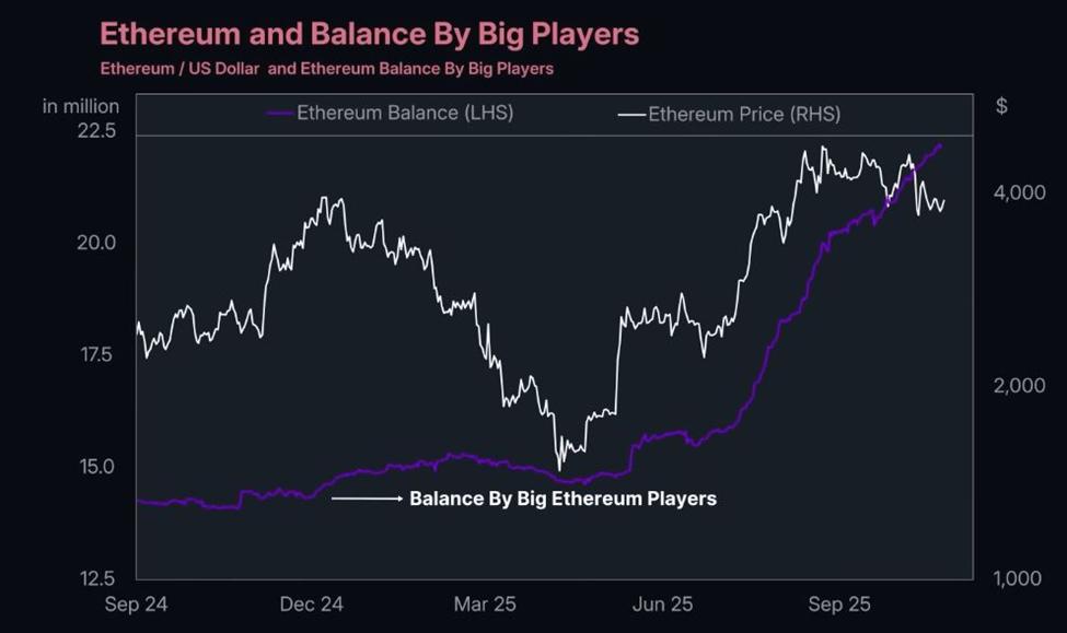过去三个月,持有1万至10万枚ETH的大额账户一直在积极增持。如此大规模的资金流入与机构需求密切相关。