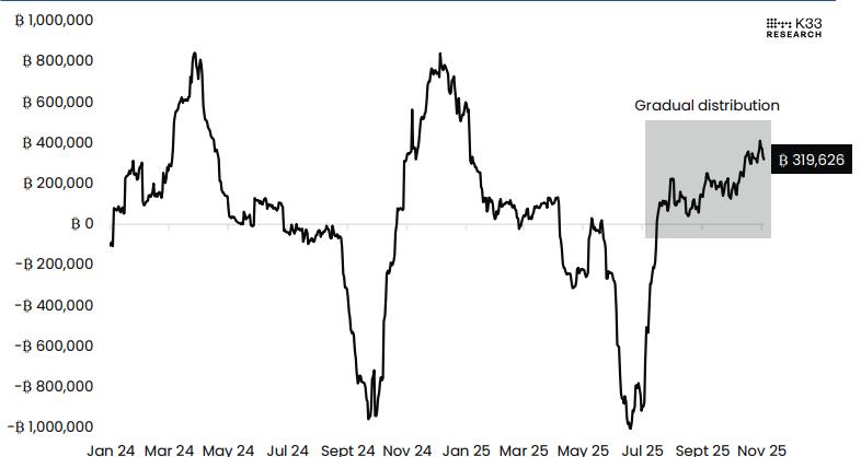 “尽管比特币价格持续在类似2024年突破前的状态中盘整数月,但人们开始猜测这一周期是否即将结束。这是否标志着新一轮加密货币寒冬的到来尚不明朗。目前,长期持有者正在获利了结,而机构资金的流入和采用也在持续巩固市场的基础,”QCP分析师总结道。