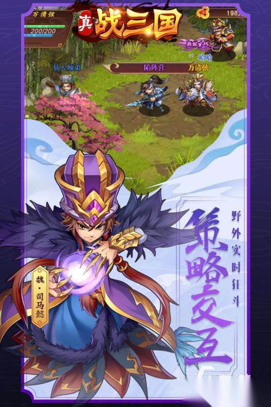 步战三国之中剧情经典,还原史实,在三国的连天烽火之中去拓展属于自己的一方天地。设定有双屏战斗机制,通过分屏的方式进行,推进镜头的展示让内容具有更好的还原度。可远程展开箭矢骑射,也可通过骑兵进行冲锋布阵,无废卡养成。拥有一键挂机及高倍跳过功能,离线也可获得各类资源奖励,在高倍跳过过程之中,可做到随玩随停,拥有多维策略组合机制。