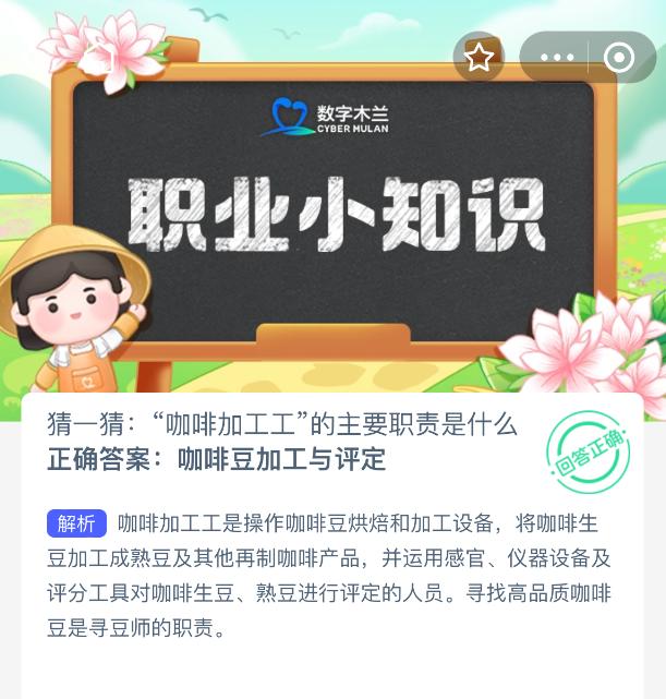 猜一猜:“咖啡加工工”的主要职责是什么?【蚂蚁新村每日一题】2025年11月11日题目已发布!坚持答题,积累木兰币,即可加速小镇建设。答对本题,立即可享“产速+3/时”的加速奖励!今天正确答案是【咖啡豆加工与评定】。咖啡加工工是操作咖啡豆烘焙和加工设备,将咖啡生豆加工成熟豆及其他再制咖啡产品,并运用感官、仪器设备及评分工具对咖啡生豆、熟豆进行评定的人员。